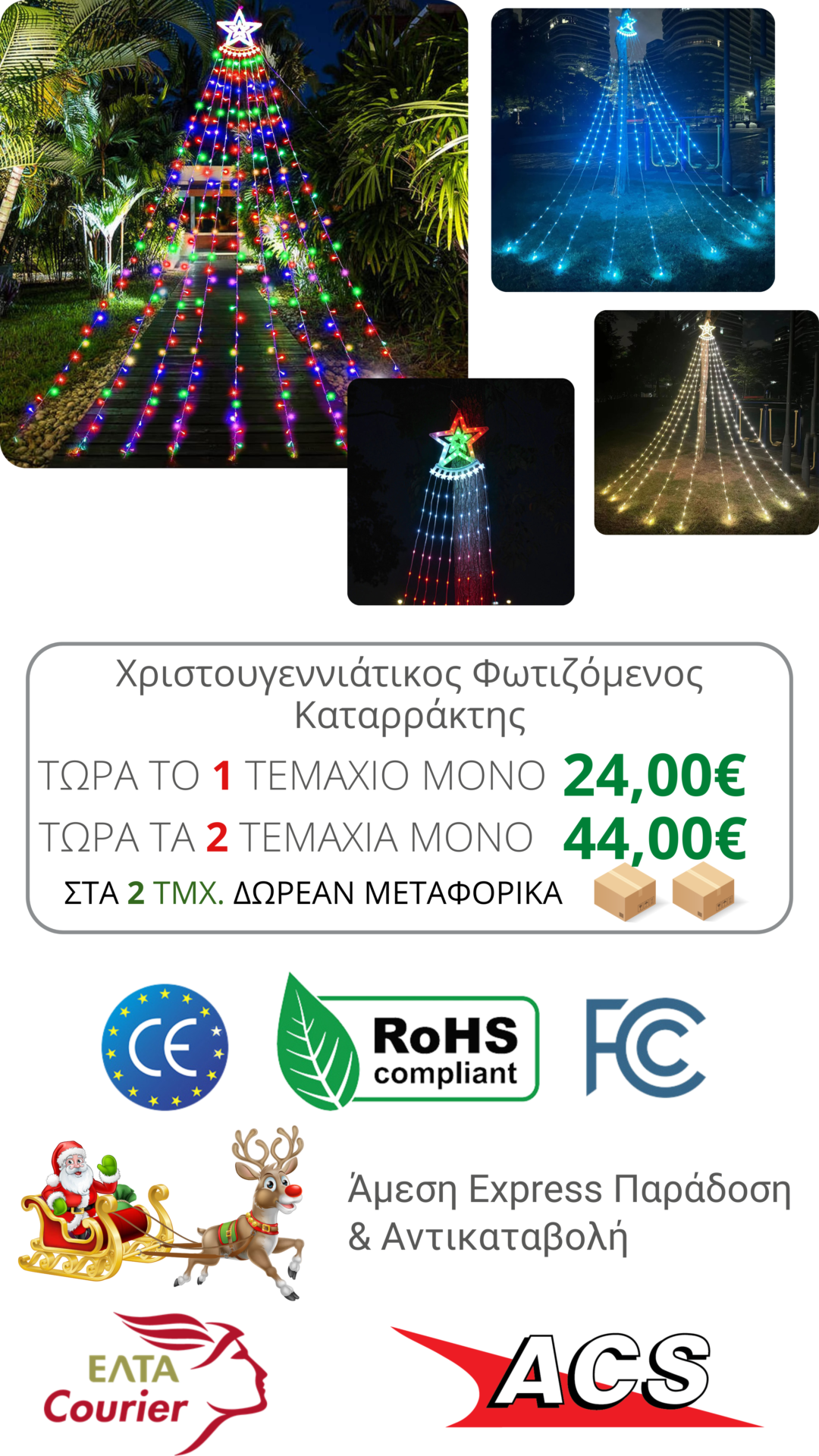 - Χριστουγεννιάτικος Καταρράκτης Εξωτερικού Χώρου με τεχνολογία LED.